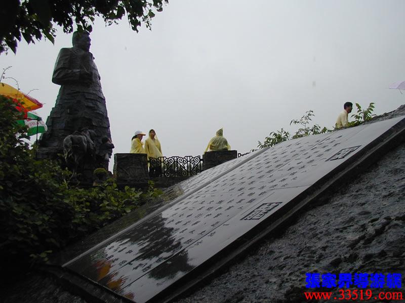 (屈子行吟)在武陵源民間流傳的歷史人物中,除了赤松子、秦始皇、張良、向王天子等,還有一個(gè)屈原。一腔愛國熱血的屈原受奸臣誹謗、打擊,先后被放逐漢北、江南。屈原流放江南期間,據(jù)說曾到過澧水,這在他的詩作中多次得到體現(xiàn)。如“捐余袂兮江中,遺余佩兮澧浦”。說來奇怪,屈原的形象居然在天子山被發(fā)現(xiàn)。你們看,那座30多米高的石峰,峨冠博帶,清瘦如人狀,長長青衫在風(fēng)中抖動(dòng),他反背雙手,踱步遠(yuǎn)方,似行吟澤畔,似引吭悲歌,好一幅憂國憂民的儀態(tài)。這就是天子山著名景點(diǎn)--屈子行吟。