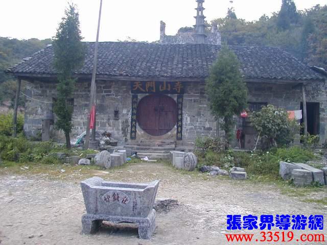 (天門山寺)天門山寺最早建于唐代,古稱云缽庵、靈泉院、嵩梁堂,明代時(shí),因擇址不當(dāng)而屢遭風(fēng)摧又常遭水荒,才將天門山寺從東部山頂遷移至此。以前這里古木參天,濃蔭蔽日。古寺門楣上刻有“天門仙山”四字,大門兩邊的對(duì)聯(lián)是:“天外有天天不夜,山上無(wú)山山獨(dú)尊”,傳為李自成部將野拂撰書(shū)。進(jìn)門為大佛殿后面有觀音堂,兩邊六間平房,最后一棟是祖師殿,規(guī)模宏大。民間概括為“三進(jìn)堂、六耳房,磚墻鐵瓦鍋如壙”。山寺原建筑十分講究,飛檐翹角,雕龍畫(huà)鳳,并塑有佛道神像菩薩等。還有大鼓一面,千斤大鐘一口,一座七級(jí)石塔和一個(gè)大化錢爐。據(jù)碑刻記載,自清乾隆至民國(guó)五年的163年間,天門山寺共修葺過(guò)七次,香火曾盛極一時(shí),湘鄂川黔邊境十多個(gè)縣的信徒絡(luò)繹不絕,都來(lái)這里進(jìn)香拜佛。現(xiàn)天門山旅游股份有限公司正在大規(guī)模地修復(fù)天門山寺,昔日的繁華又將重現(xiàn)。