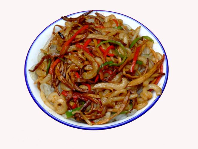 張家界草帽面》。 這個名字的由來是因為老板常年戴著草帽賣面,臊子非常香,可以添加,面是他自己加工的據(jù)說是全手工的,老板人很古怪,每天只賣那么一點,以前更古怪,只有星期1、3、5的晚上9點才有賣,想吃他家的草帽面居然還得跟他打電話問他是否心情好,出不出來賣面?預約了才不會撲空。但是就因為這點神秘,所以他家的面有些神話色彩。在汽車站口百貨大樓東門對面的巷子口,一輛板車上面掛了一頂草帽,那就是了,不過每天下午1點左右就沒了,要吃啊,嘿嘿,您趕早!能不能吃的上,得看您造化咯!