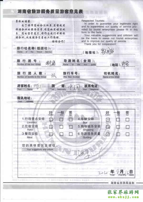 - 游客夏先生為表揚導(dǎo)游李姣姣寫來表揚信致我張家界... [14811]