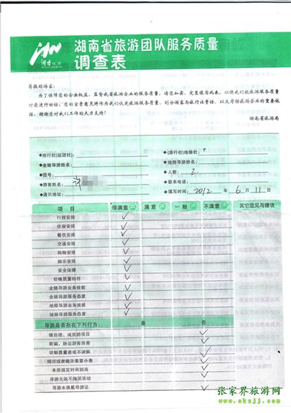 2012年6月11日許小姐一行2人旅游質量反饋