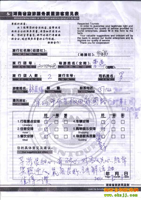 - 游客夏先生為表揚導游李姣姣寫來表揚信致我張家界... [14811]