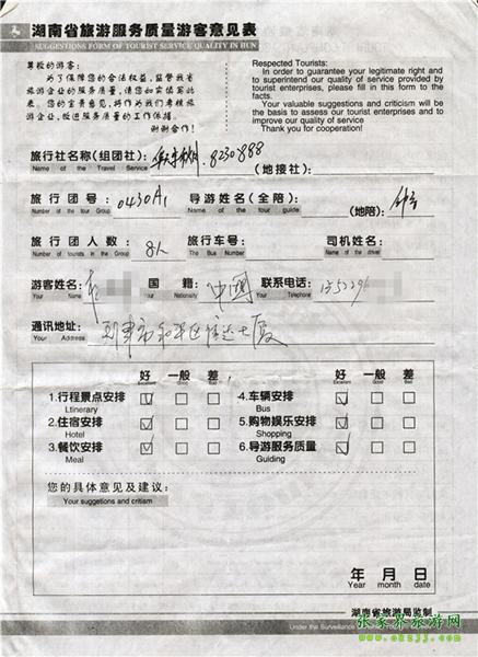 2011年5月3日楊先生一行8人旅游質(zhì)量反饋