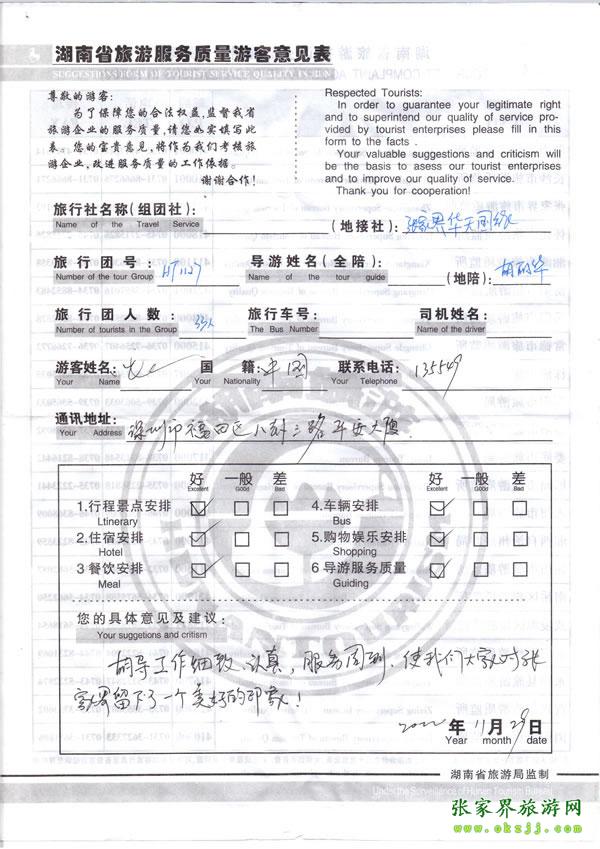 - 游客夏先生為表?yè)P(yáng)導(dǎo)游李姣姣寫來(lái)表?yè)P(yáng)信致我張家界... [14811]
