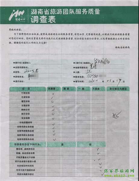 2011年6月17日牛先生一行5人旅游質(zhì)量反饋