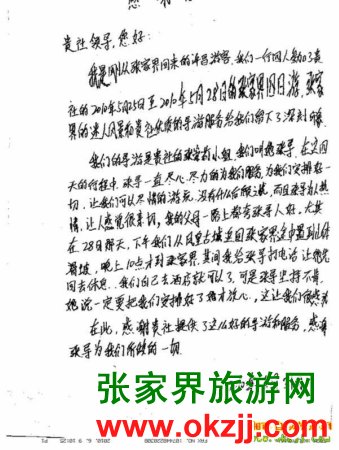 - 游客夏先生為表揚導游李姣姣寫來表揚信致我張家界... [14811]