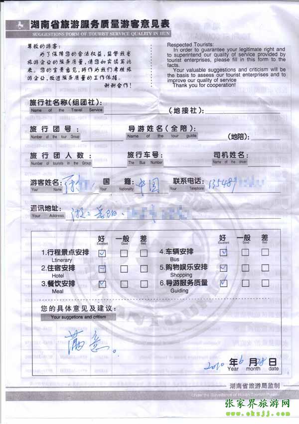 2010年6月28日岳陽(yáng)符先生旅游質(zhì)量反饋