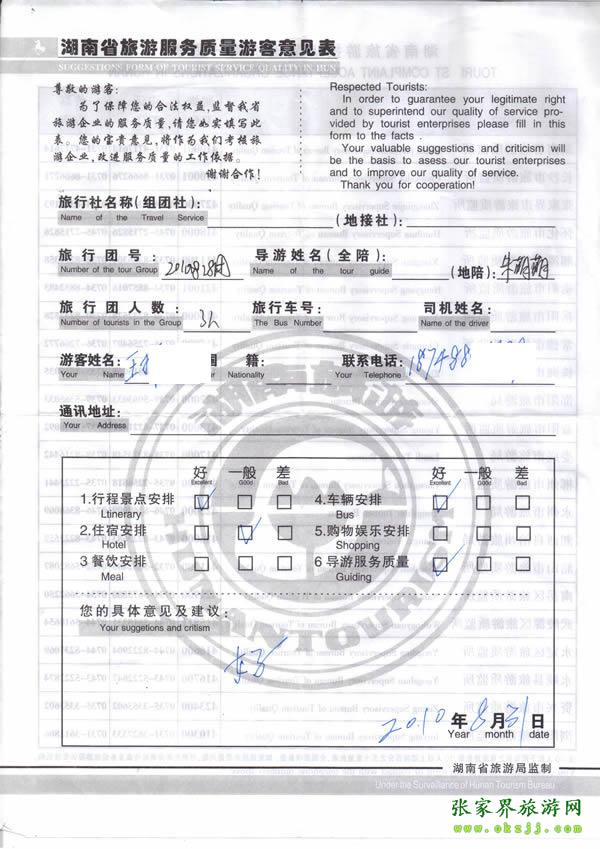 - 2011年10月26日張小姐一行18人旅游質(zhì)量反饋 [10482]