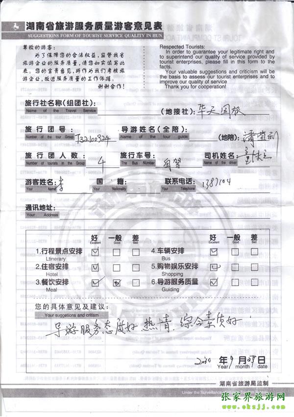 - 游客夏先生為表揚(yáng)導(dǎo)游李姣姣寫來表揚(yáng)信致我張家界... [14811]