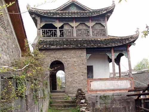 這是一處具有濃厚民族特色的建筑群,有大門(mén)、正殿、戲臺(tái)20多間屋宇,并有天井、天池、回廊,還設(shè)有“五福”、“六順”兩門(mén)。