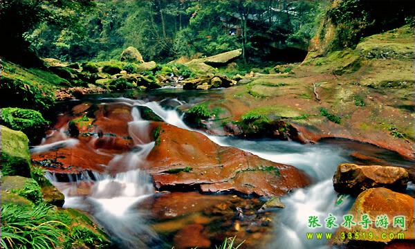 下午,我們玩了森林公園中的黃石寨和金鞭溪??戳颂鞎鴮毾弧Ⅻc將臺、南天柱、摘星臺、六奇閣,五指峰、金鞭溪、金鞭巖、文星巖、紫草潭、千里相會等,江導果然是江導,有著豐富導游經(jīng)驗的她就是不同凡響啊,個個景點都是如數(shù)家珍,說得是頭頭是道。(據(jù)網(wǎng)上說,有些導游是只帶路不講解,讓人只是看看表面,而無法去領(lǐng)略張家界那些精美絕倫的凄美傳說。我個人認為張家界的傳說也是應(yīng)該值得每一個游人去了解,去領(lǐng)略的,如果你來張家界沒有聽到這些傳說的話,那一是你的導游的水平問題,二是你的一個很大的遺憾,你來張家界的經(jīng)歷是不完美的),什么龍蝦花的來歷,金鞭巖的前身,秦始皇和孟姜女與張家界的關(guān)系。晚上乘百龍電梯上袁家界(張家界的核心)一家旅館住宿。晚餐時,一葷一素一湯。我們吃著吃著,老板笑咪咪的搬上一鍋火鍋,當?shù)氐耐岭u火鍋。我們很詫異,我說,我們沒有點這個菜?。±习?,你是不是弄錯了?老板說,這是你們江導叫我特地做的。我突然明白了,一定是江導是為我多給的那50多塊錢了。由于長途奔波,加上下午又走了很多路,晚上洗了一個澡就睡下了。山里的氣溫很低,在這全國都如火爐時,張家界的晚上卻要蓋很厚的被子,真是一塊寶地啊。